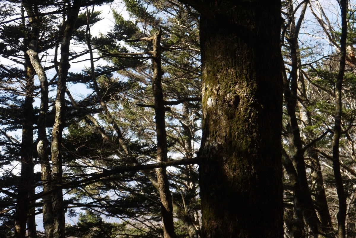 広葉樹の森を抜けた先には、モミやマツの常緑樹の森。